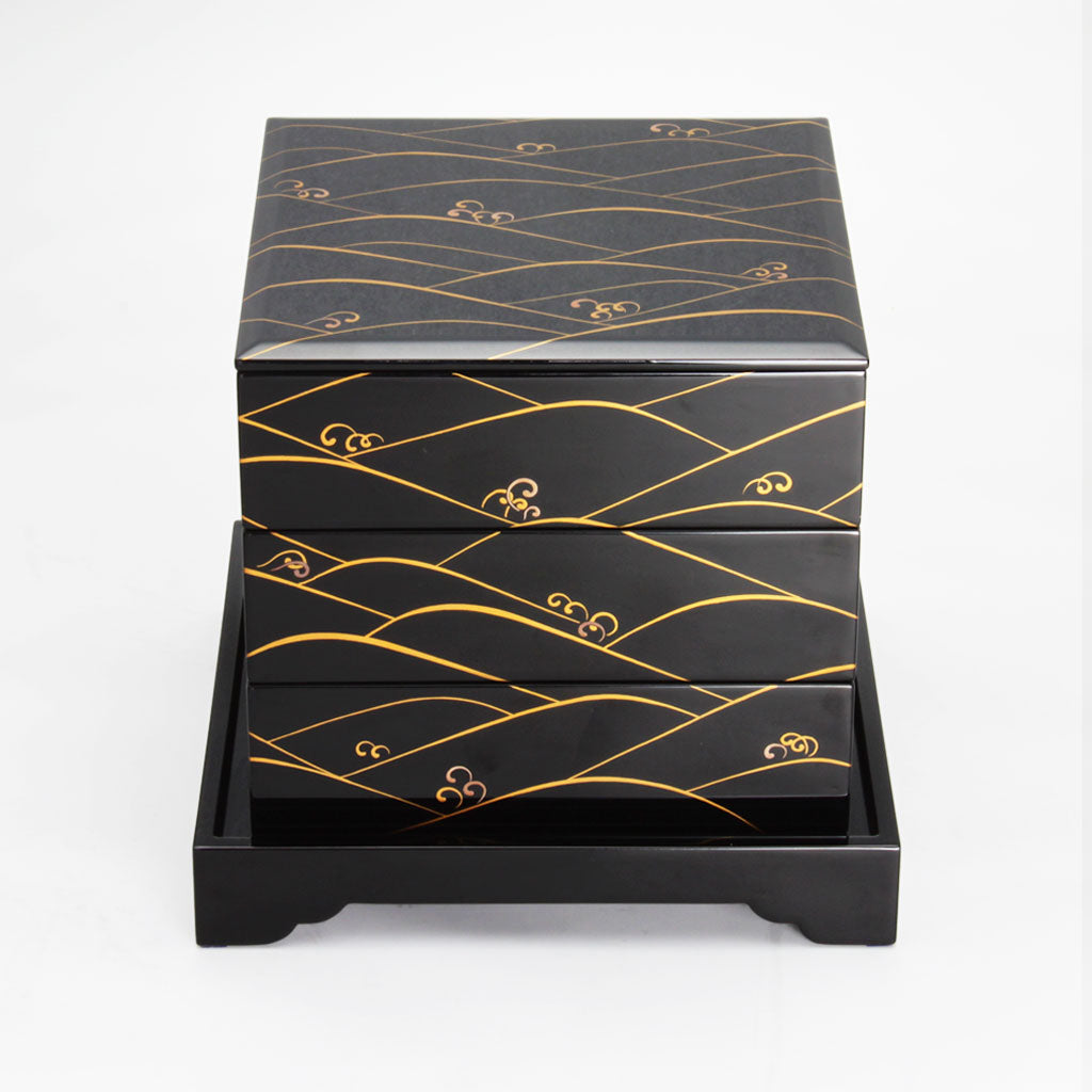 The lid and sides are covered with Warabi-nami (bracken waves), which are drawn on the tops of the waves as if they were bracken, creating a traditional yet somewhat modern impression.