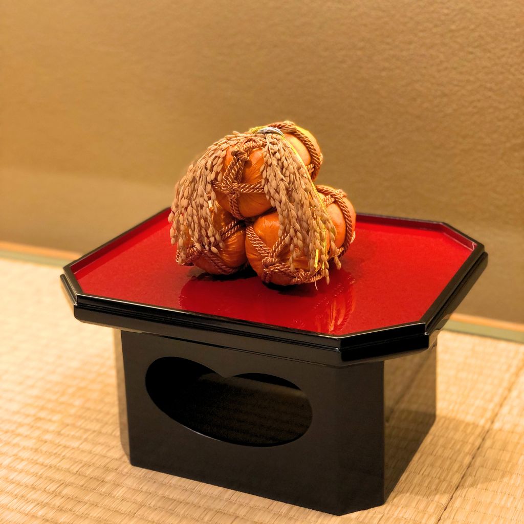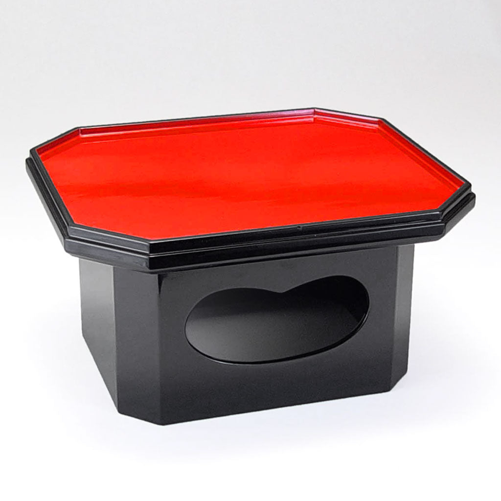 The beautiful stand called "shimadai", which has a beautiful top surface lacquered in bright red.
