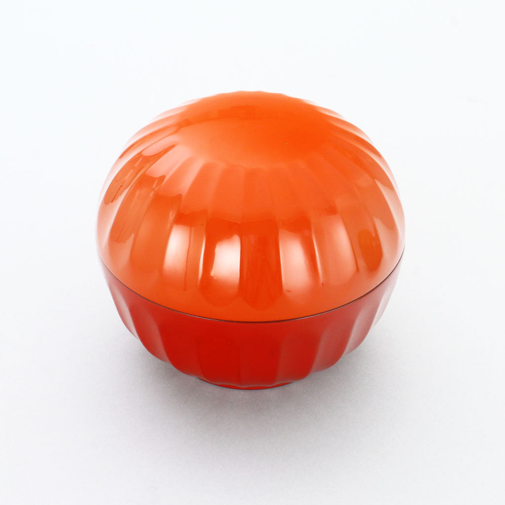The lid is lacquered in bright orange-red “Araishu” and the body is lacquered in deep red, which also accentuates the difference in expression.