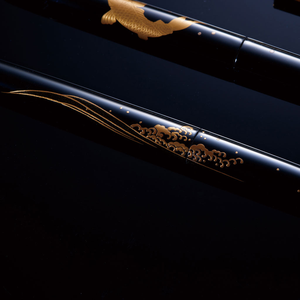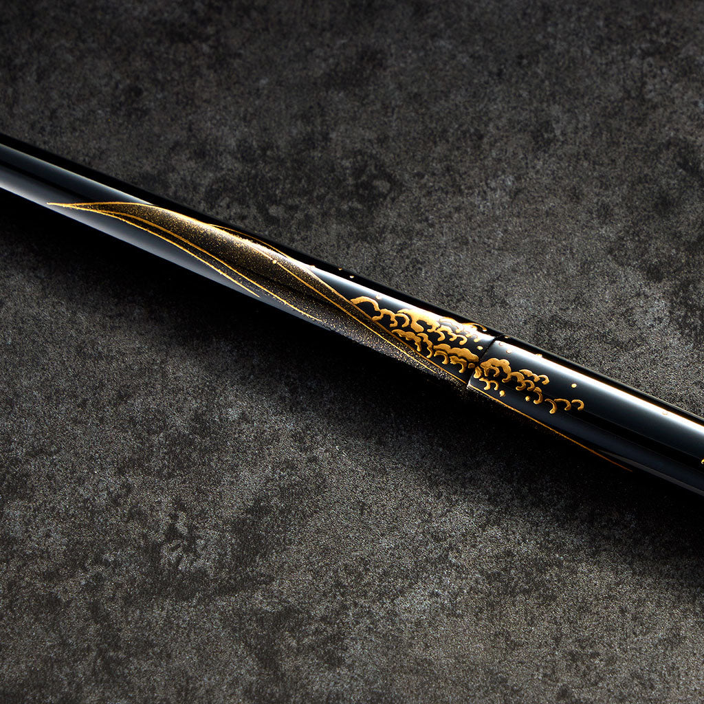 Maki-e uses many techniques that allow you to enjoy not only the beauty of the raised waves, but also the various gold glints.