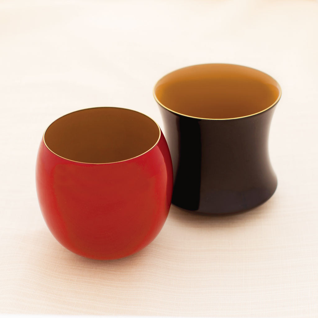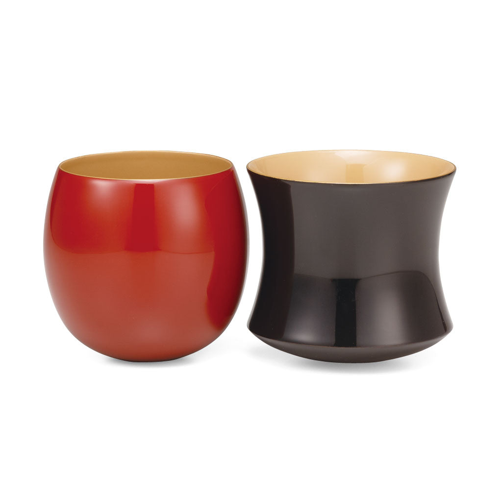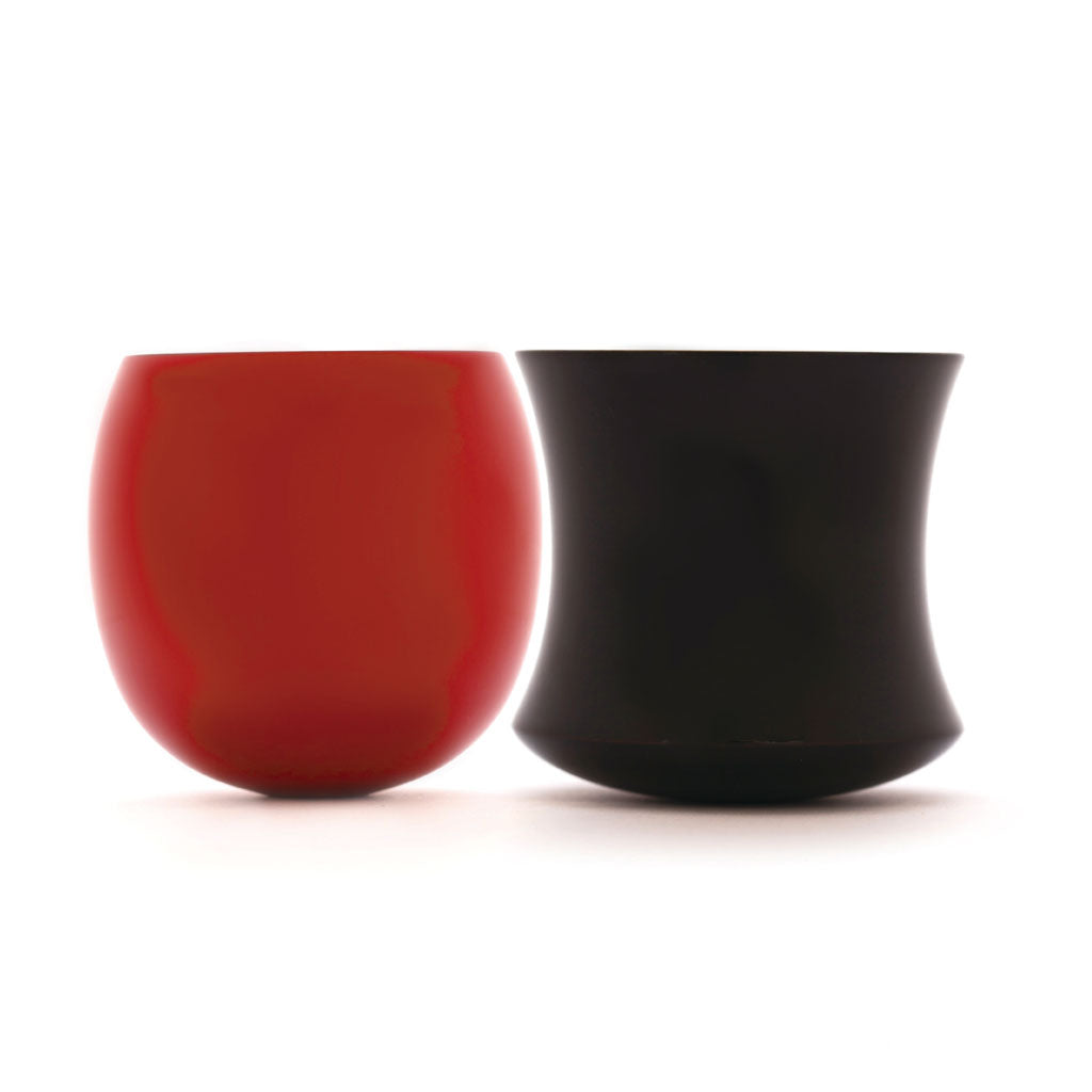 The shape of black is designed to sway a little, and the red cup snuggles up to it.